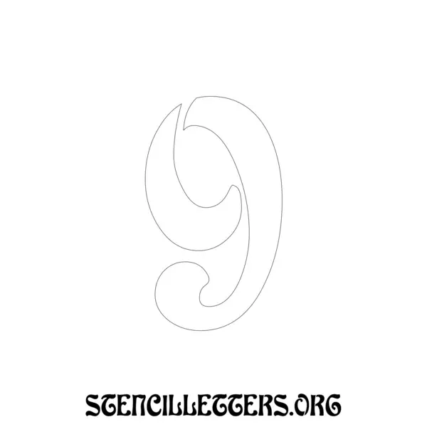 Printable Individual 0-9 Number stencils design 196 Art Nouveau in 2 inch numbers high-resolution templates size.
