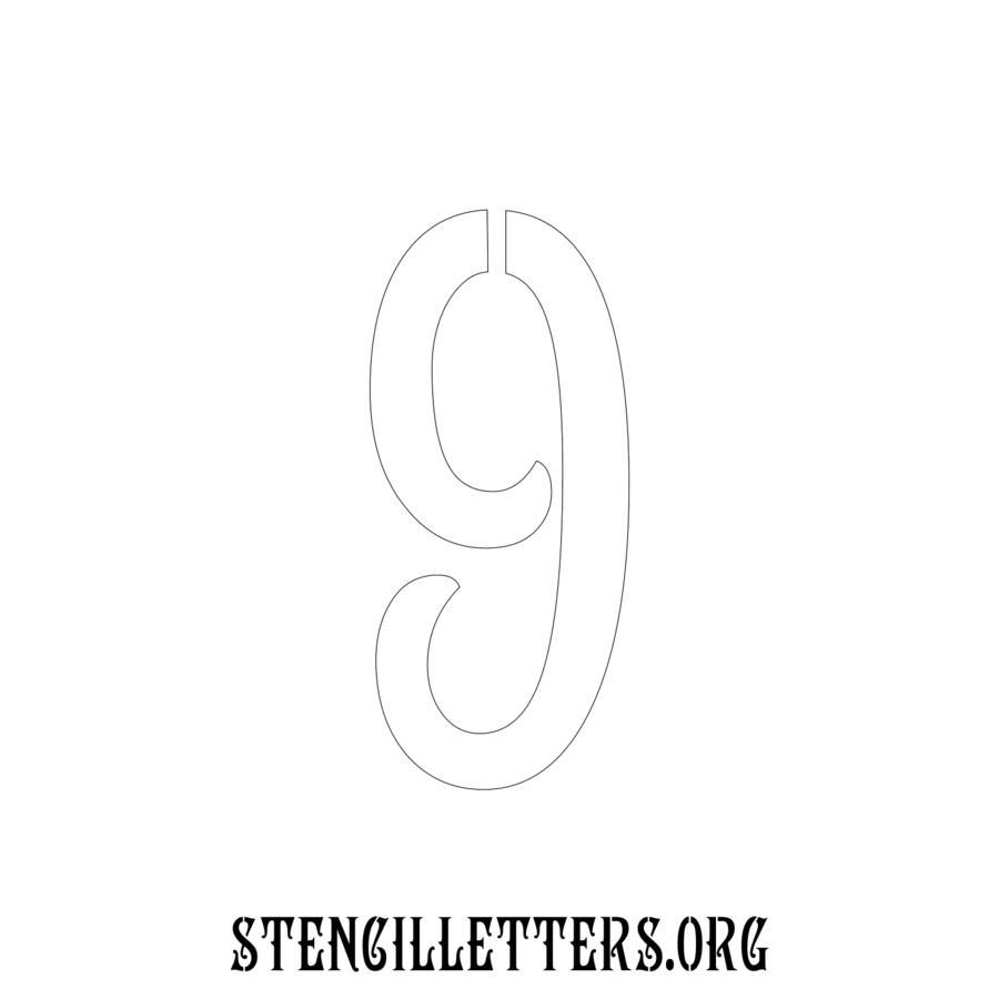 Printable Individual 0-9 Number stencils design 192 Art Nouveau in 3 inch numbers high-resolution templates size.