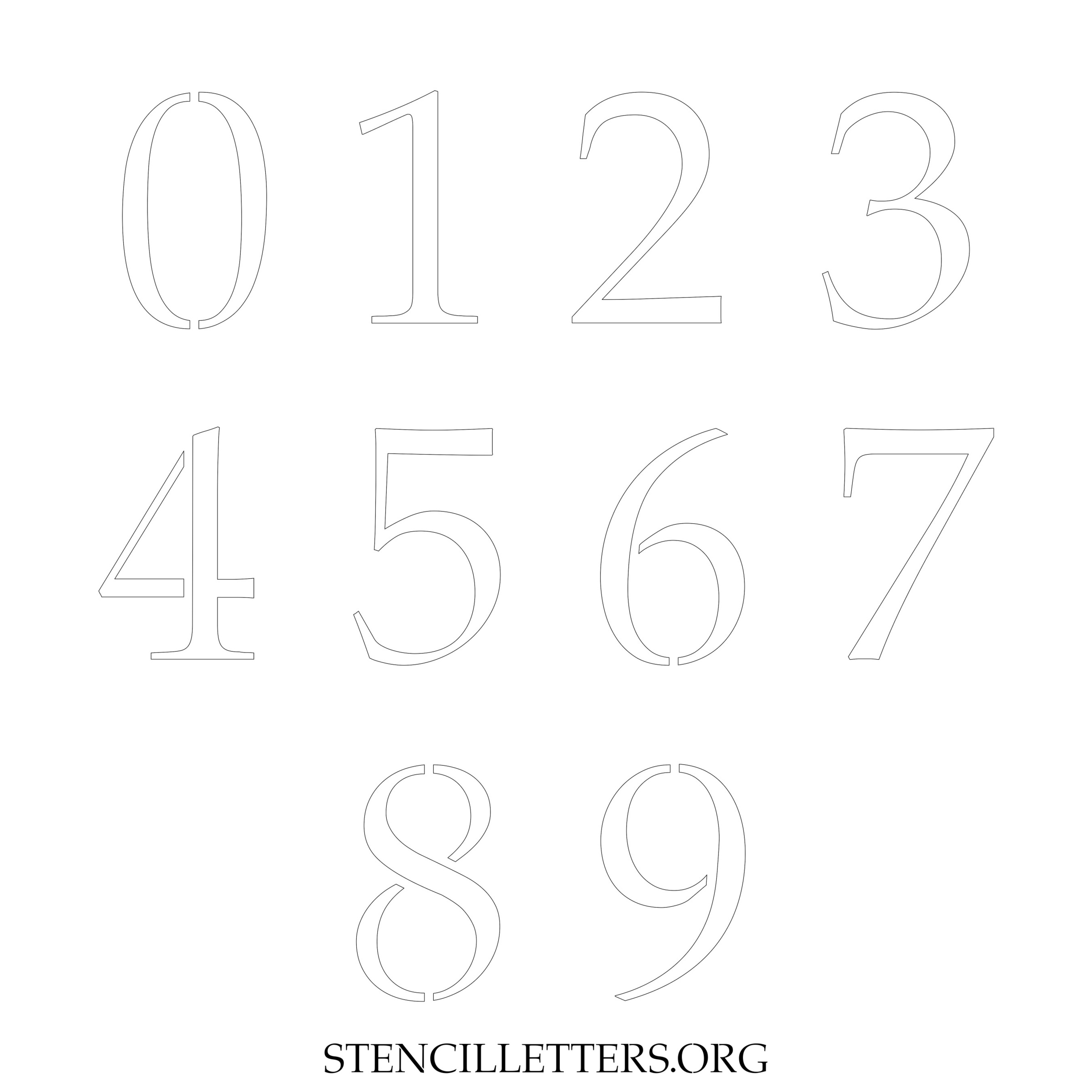 Stencil Design 16 Elegant. Print these free numbers stencils and make your own DIY templates for your stenciling projects. Available in high resolution printable sizes: 4 Inch, 5 Inch, 6 Inch, 7 Inch, 8 Inch, 9 Inch and 10 Inch.