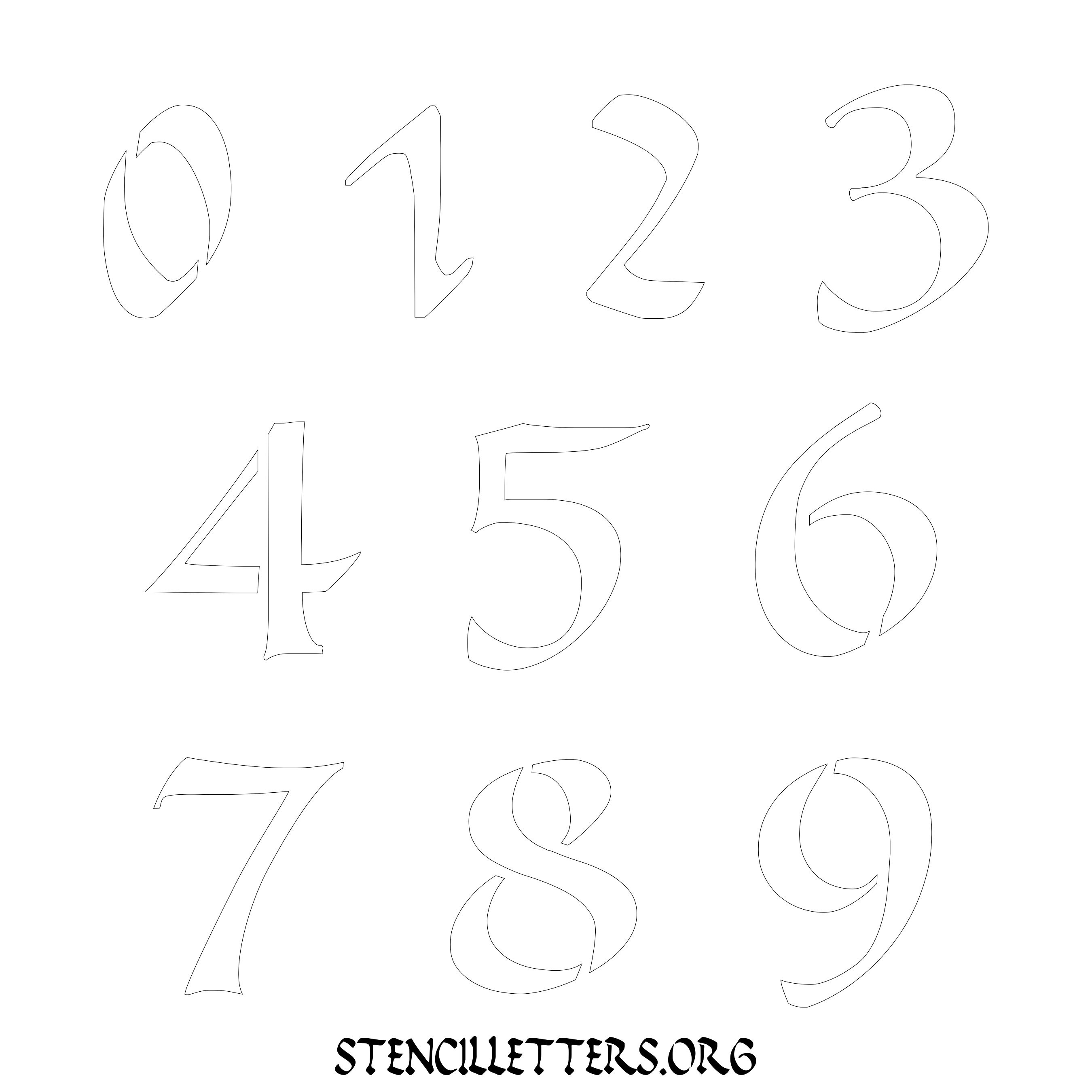 Stencil Design 173 Calligraphy. Print these free numbers stencils and make your own DIY templates for your stenciling projects. Available in high resolution printable sizes: 4 Inch, 5 Inch, 6 Inch, 7 Inch, 8 Inch, 9 Inch and 10 Inch.
