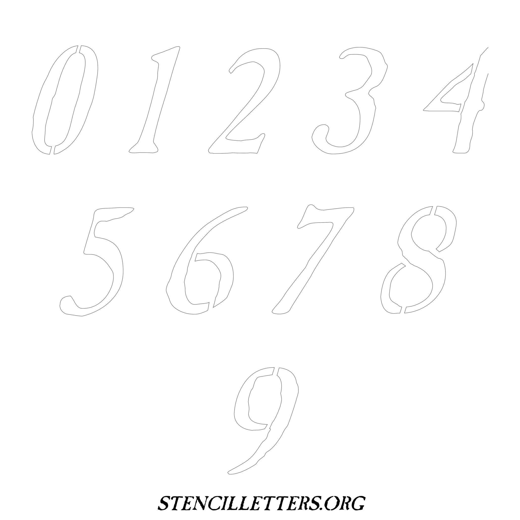 Stencil Design 41 Italic. Print these free numbers stencils and make your own DIY templates for your stenciling projects. Available in high resolution printable sizes: 4 Inch, 5 Inch, 6 Inch, 7 Inch, 8 Inch, 9 Inch and 10 Inch.