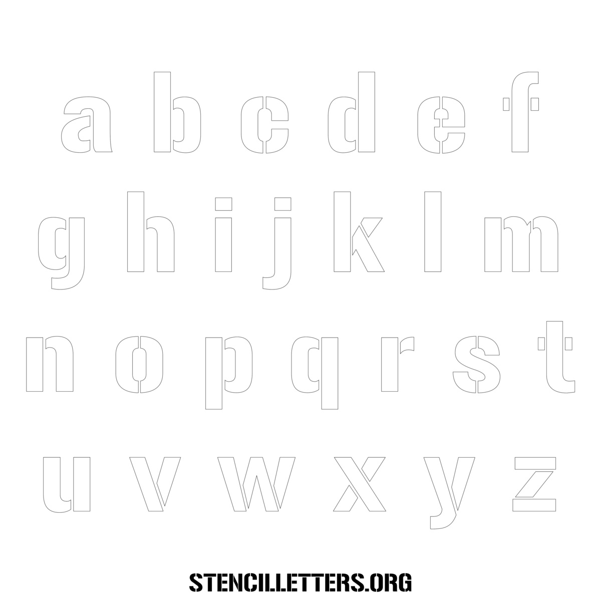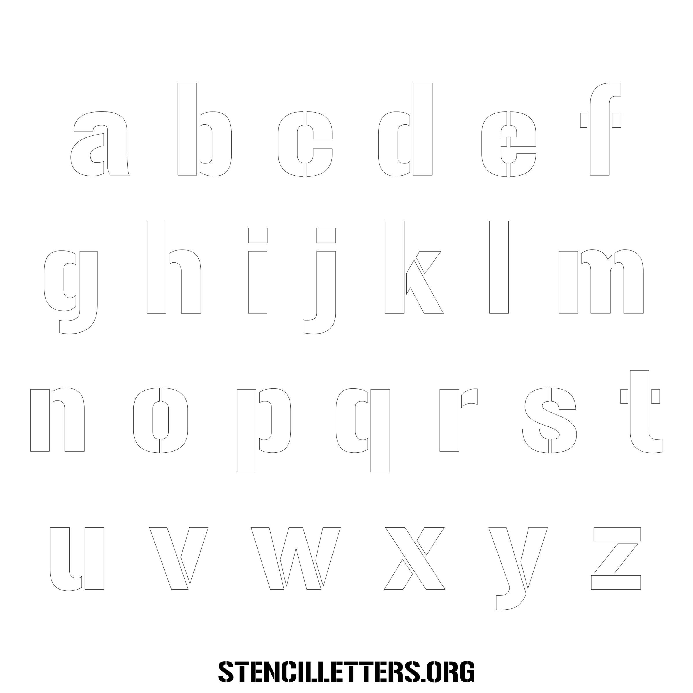 Stencil Design 247 Poster Stencil. Print these free lowercase letter stencils and make your own DIY templates for your stenciling projects. Available in high resolution printable sizes: 4 Inch, 5 Inch, 6 Inch, 7 Inch, 8 Inch, 9 Inch and 10 Inch.