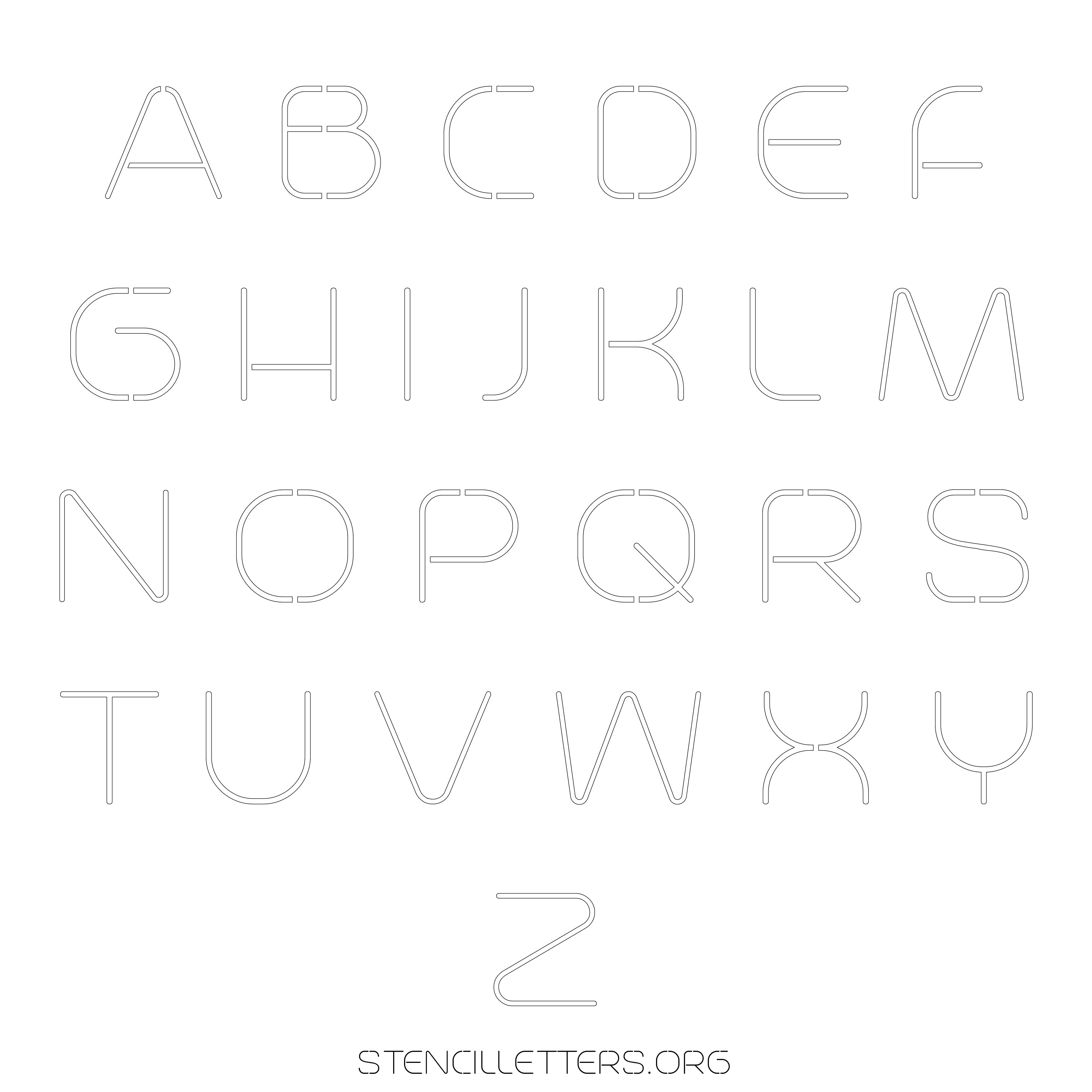 Stencil Design 1 Elegant. Print these free uppercase letter stencils and make your own DIY templates for your stenciling projects. Available in high resolution printable sizes: 4 Inch, 5 Inch, 6 Inch, 7 Inch, 8 Inch, 9 Inch and 10 Inch.