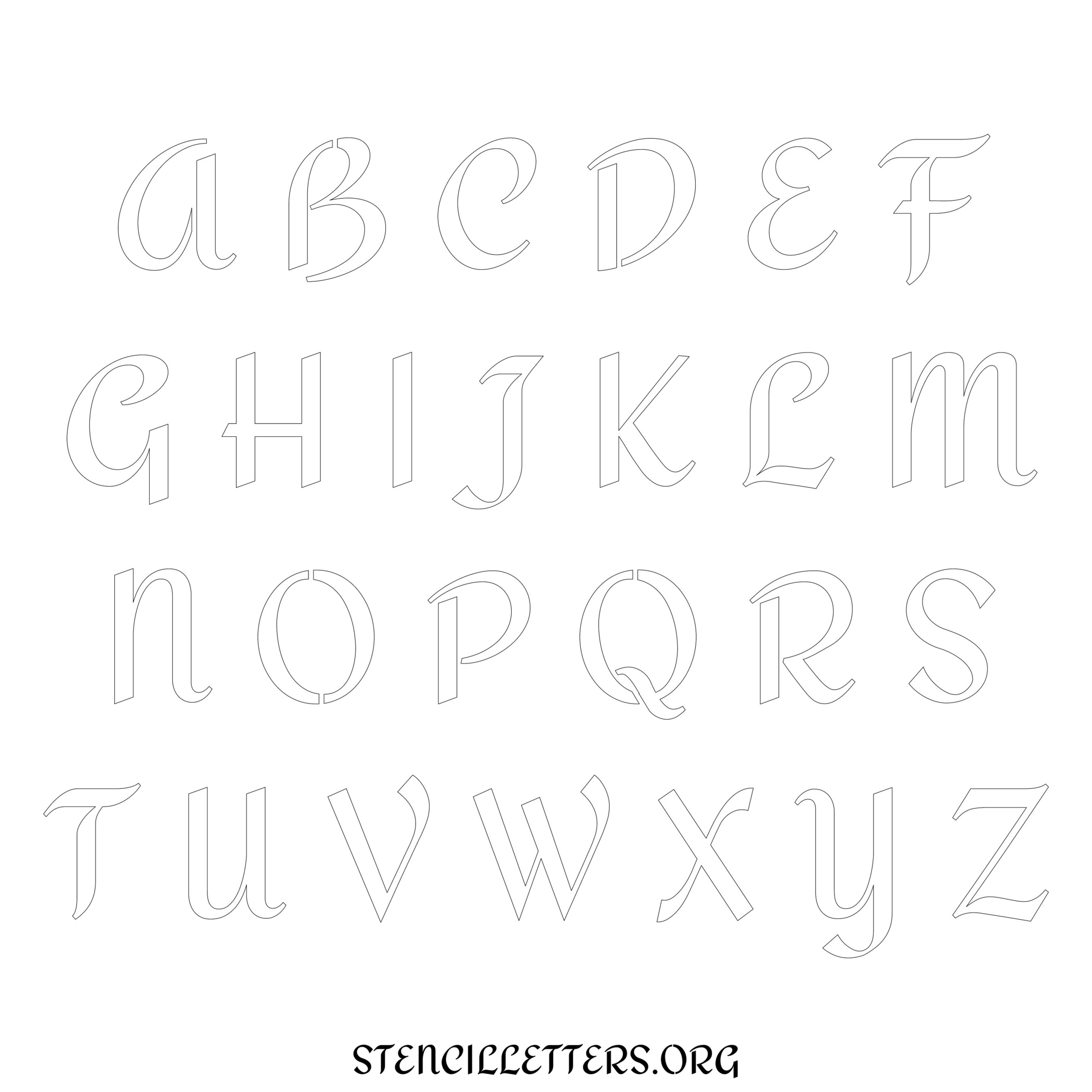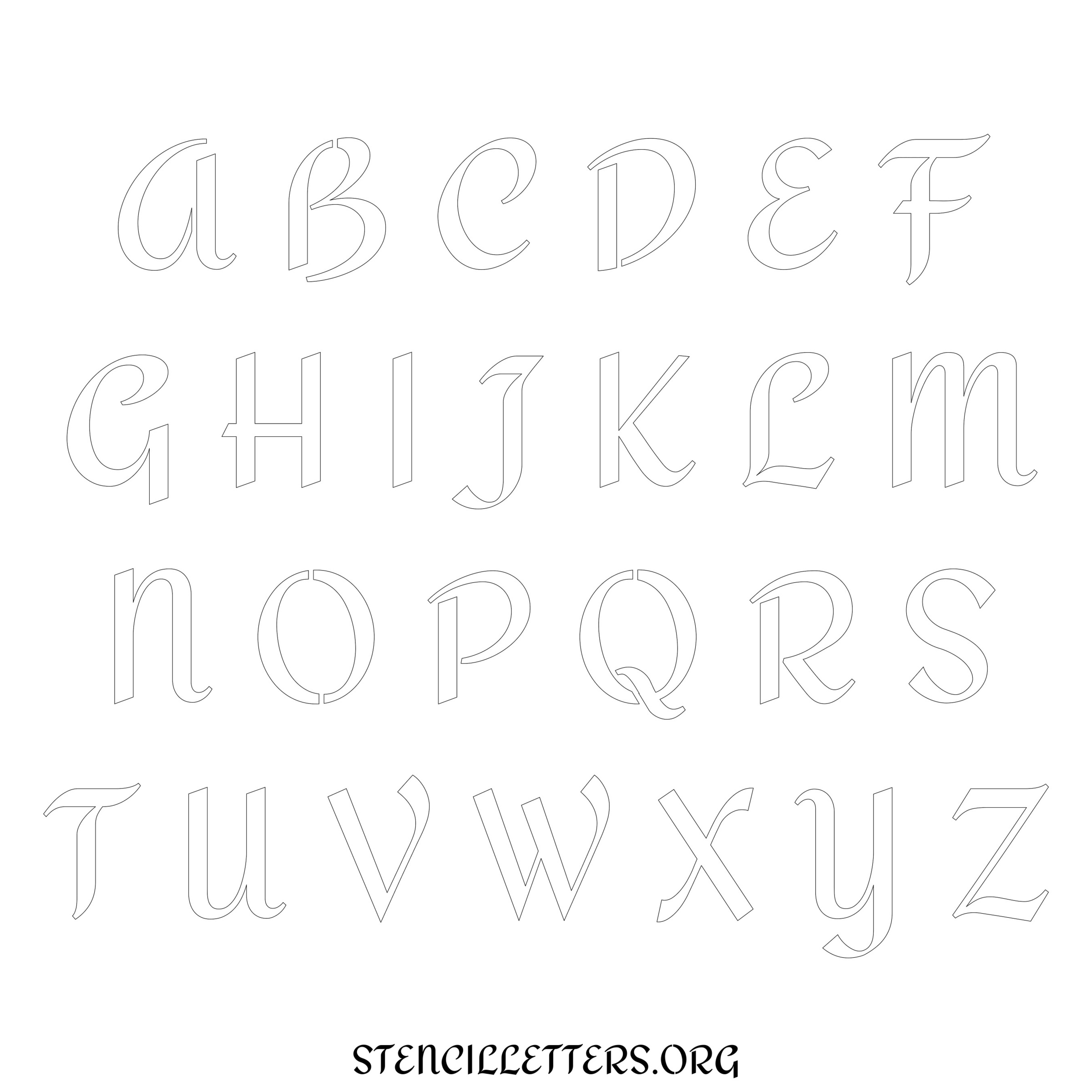 Stencil Design 112 Formal. Print these free uppercase letter stencils and make your own DIY templates for your stenciling projects. Available in high resolution printable sizes: 4 Inch, 5 Inch, 6 Inch, 7 Inch, 8 Inch, 9 Inch and 10 Inch.