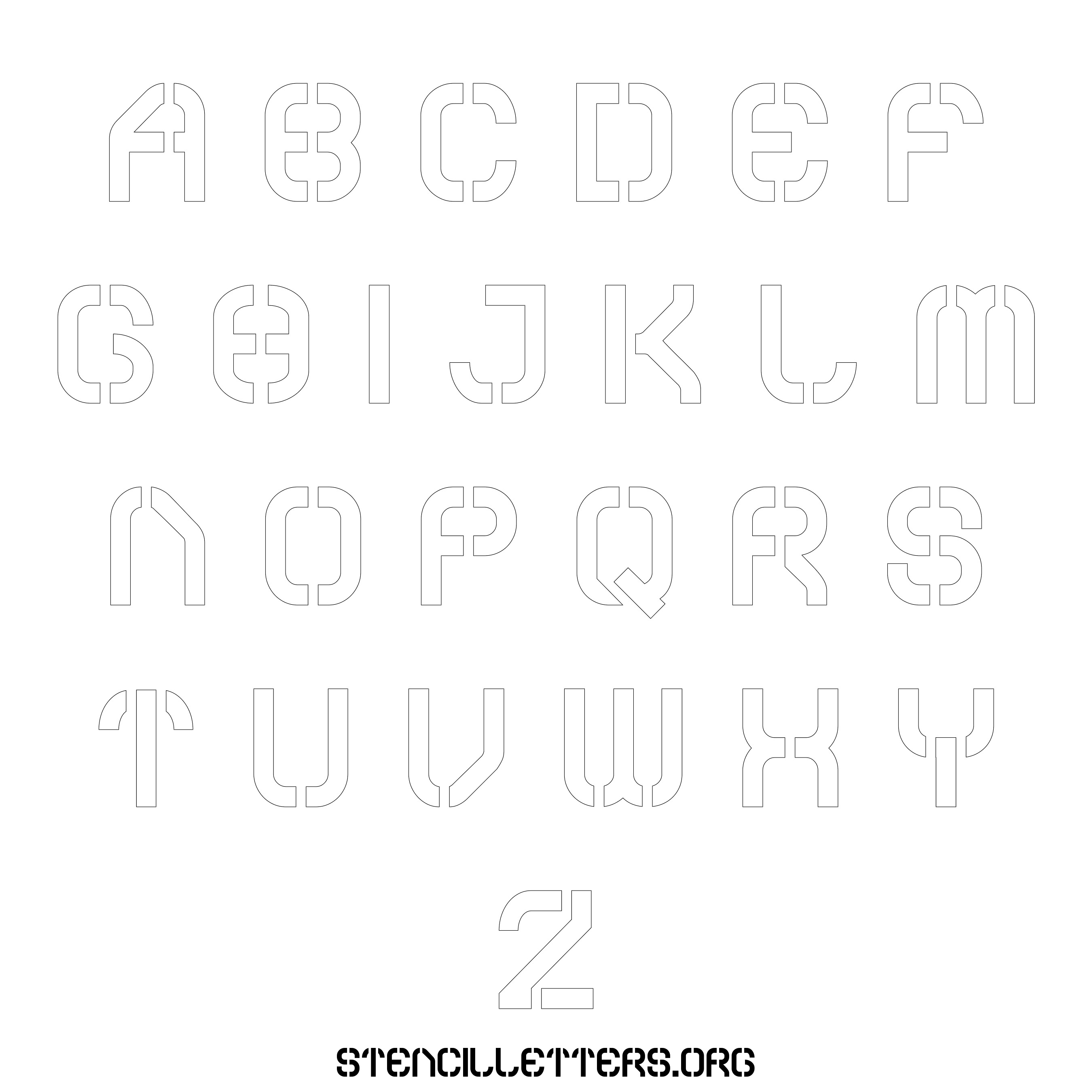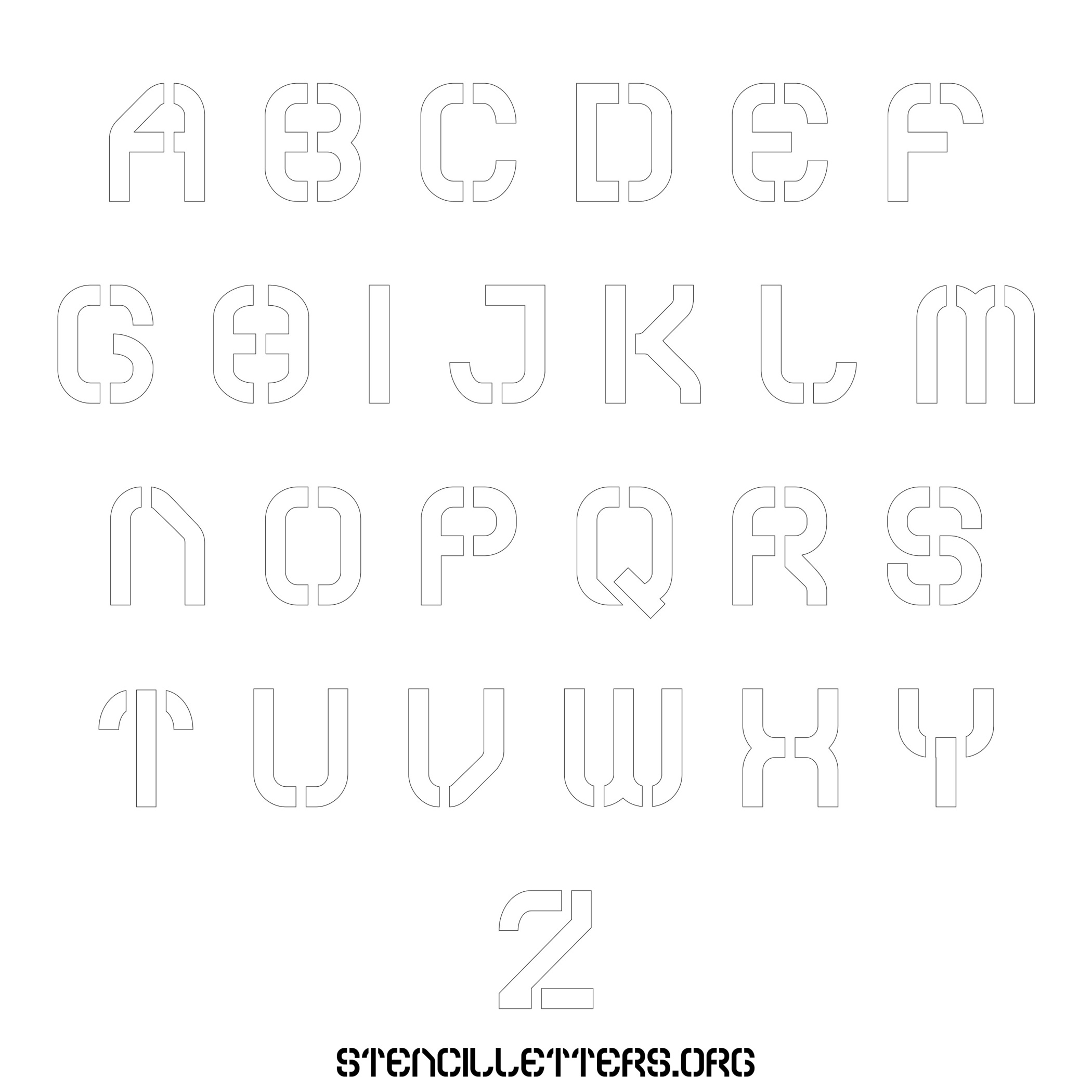 Stencil Design 212 Futuristic. Print these free uppercase letter stencils and make your own DIY templates for your stenciling projects. Available in high resolution printable sizes: 4 Inch, 5 Inch, 6 Inch, 7 Inch, 8 Inch, 9 Inch and 10 Inch.