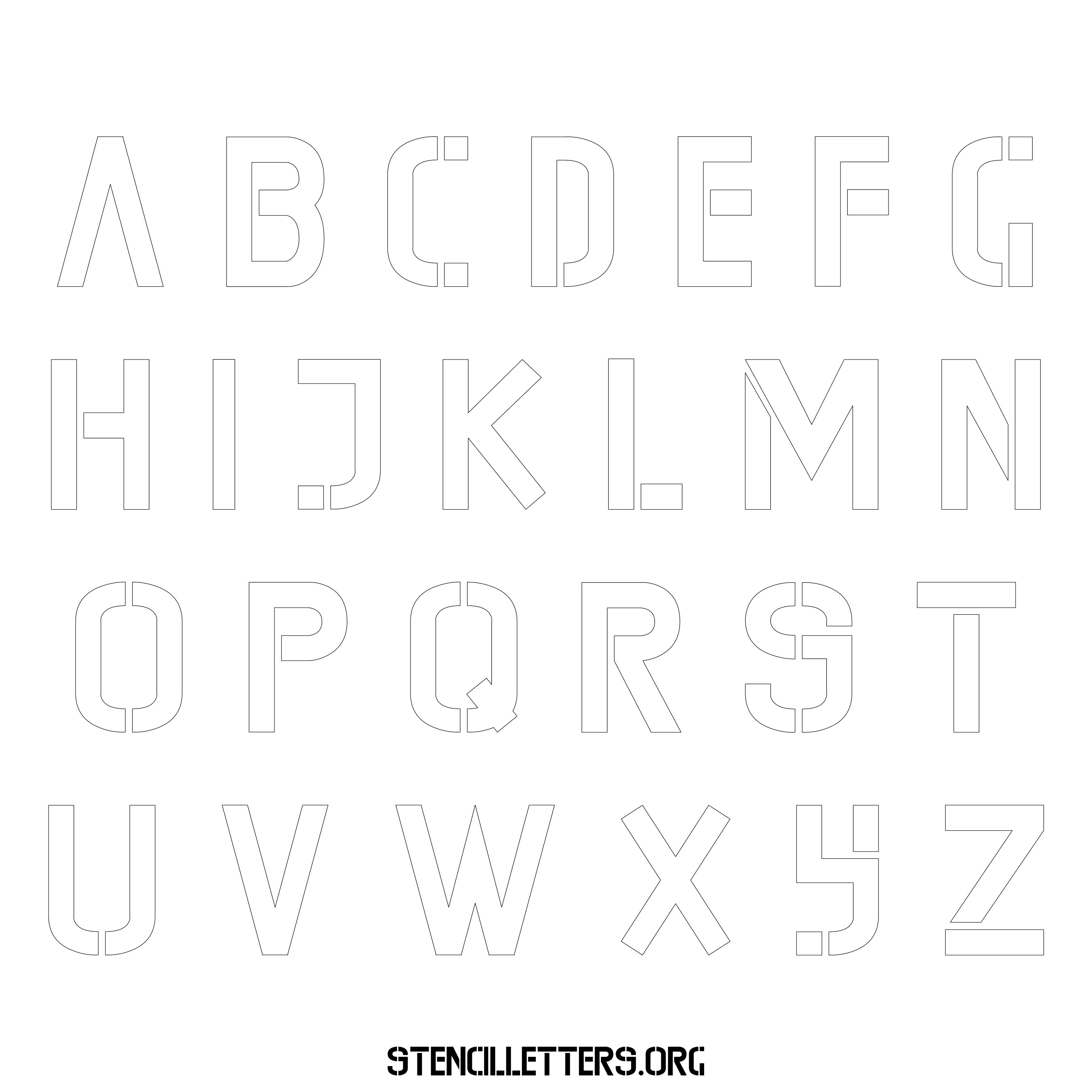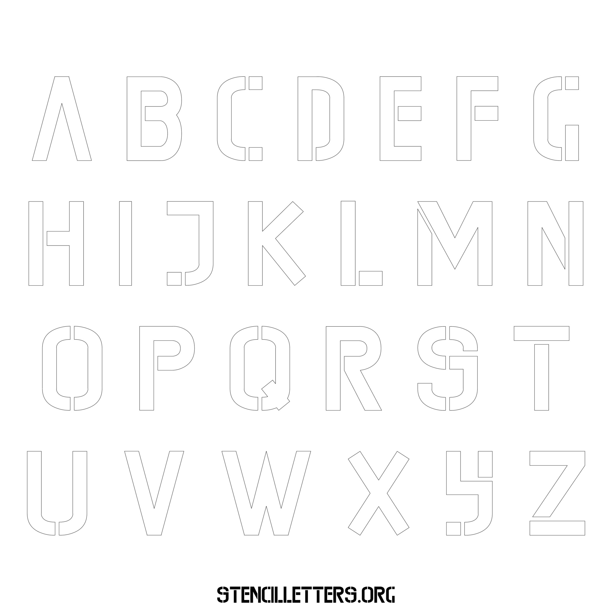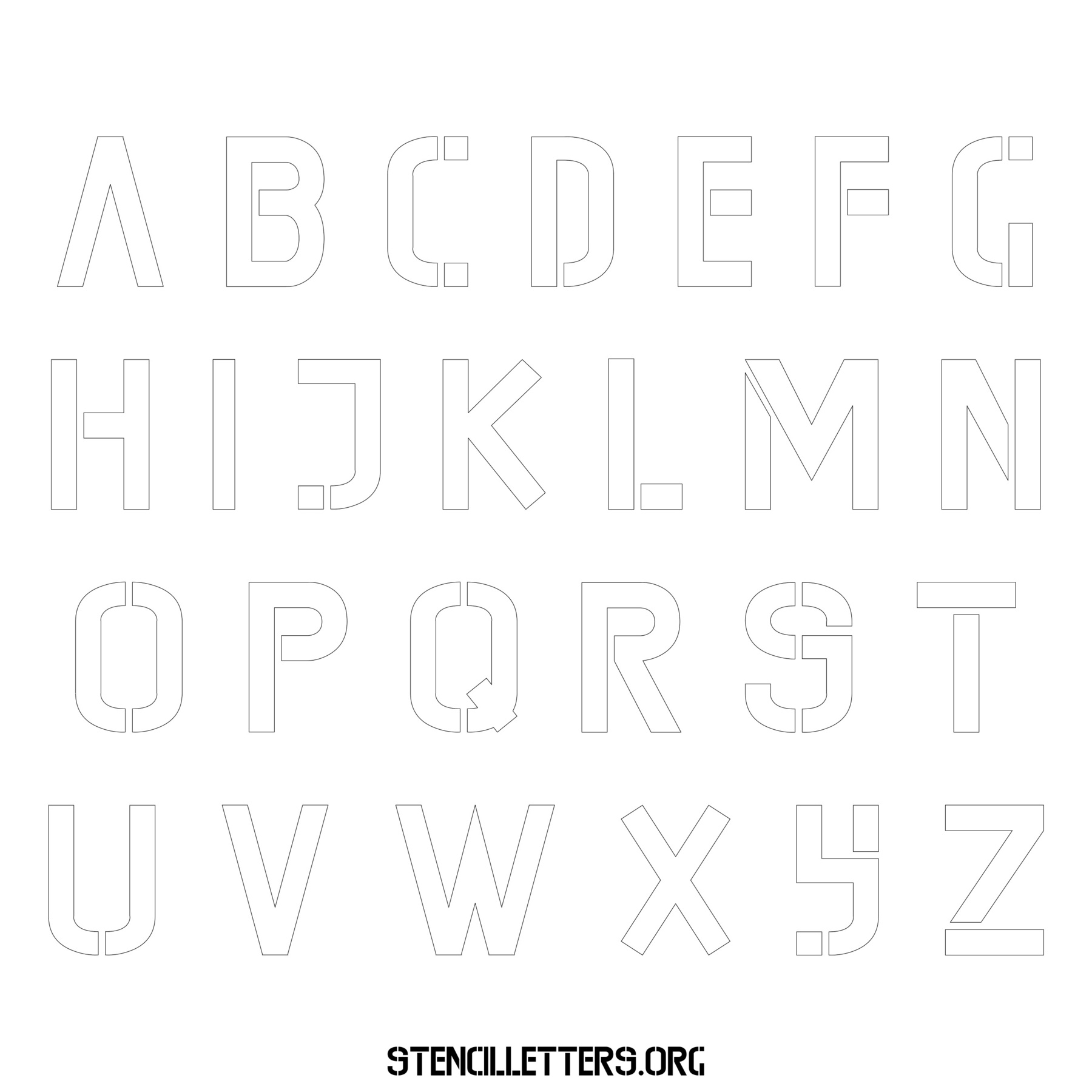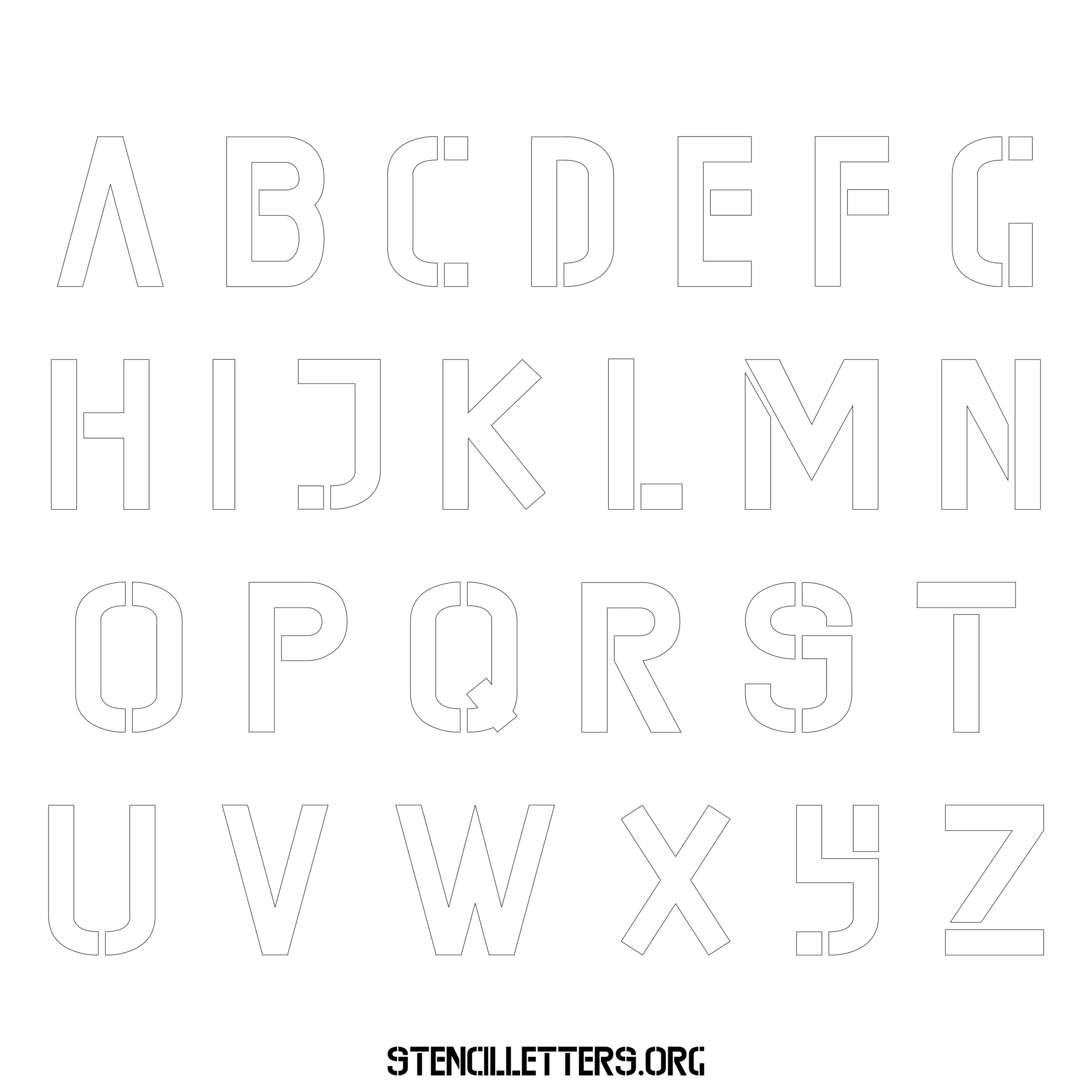 Stencil Design 225 Edgy. Print these free uppercase letter stencils and make your own DIY templates for your stenciling projects. Available in high resolution printable sizes: 4 Inch, 5 Inch, 6 Inch, 7 Inch, 8 Inch, 9 Inch and 10 Inch.