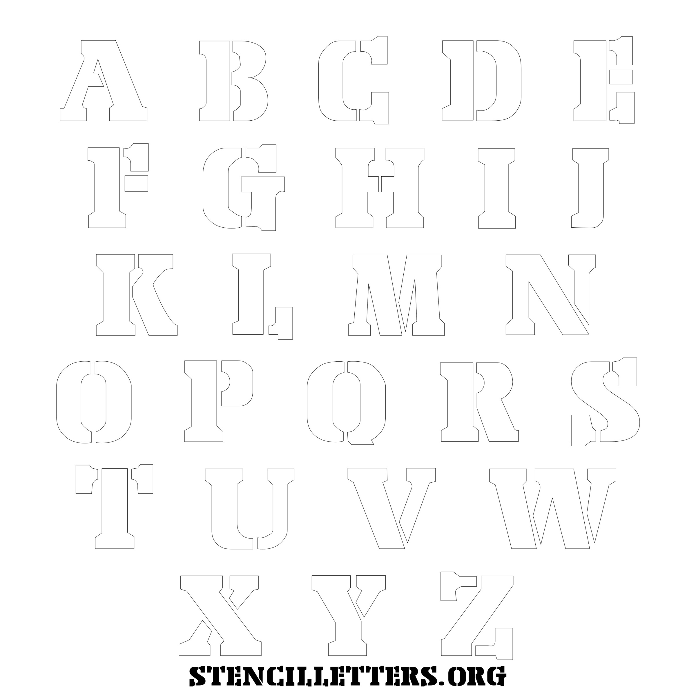 Stencil Design 234 Stencil Export. Print these free uppercase letter stencils and make your own DIY templates for your stenciling projects. Available in high resolution printable sizes: 4 Inch, 5 Inch, 6 Inch, 7 Inch, 8 Inch, 9 Inch and 10 Inch.