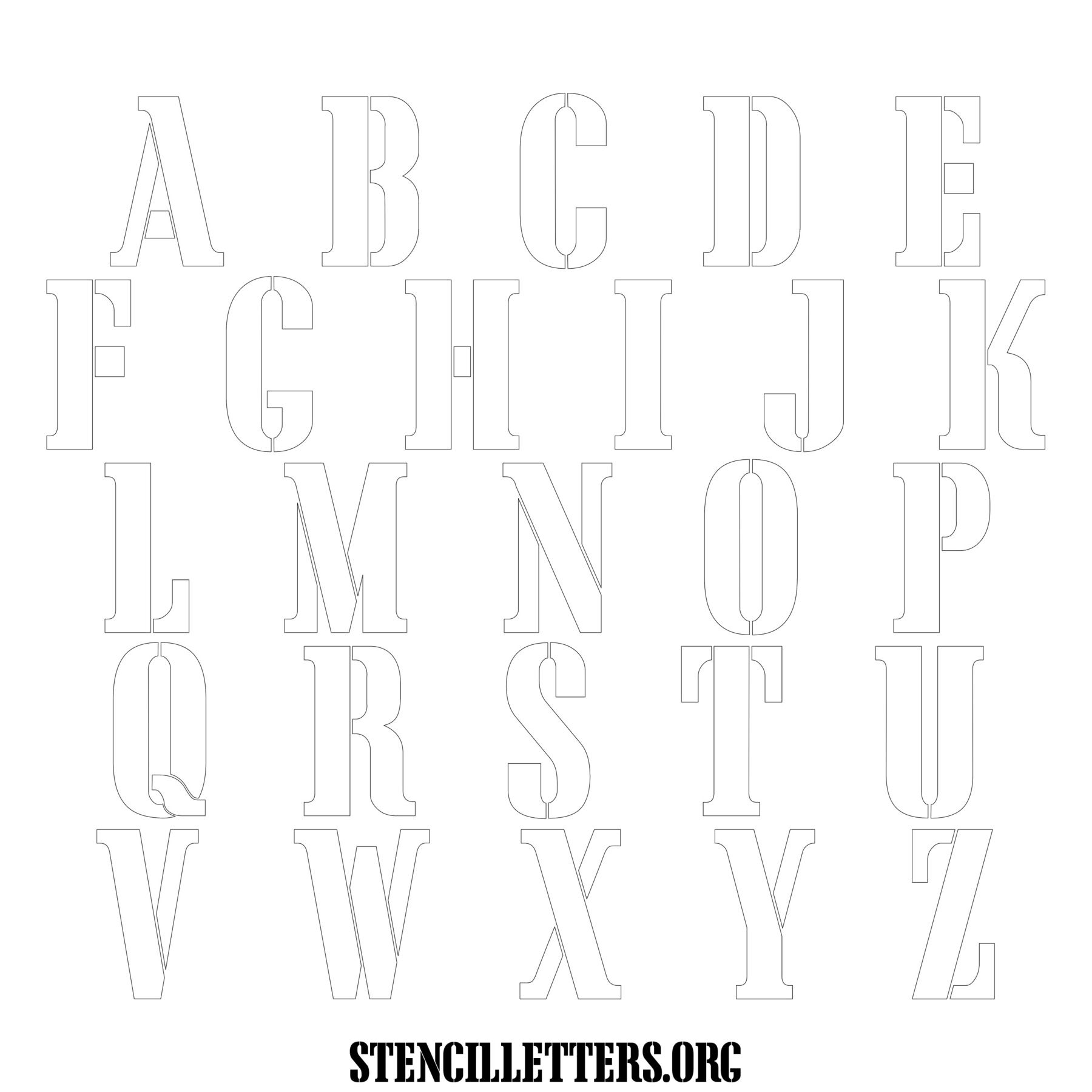 Stencil Design 243 Army. Print these free uppercase letter stencils and make your own DIY templates for your stenciling projects. Available in high resolution printable sizes: 4 Inch, 5 Inch, 6 Inch, 7 Inch, 8 Inch, 9 Inch and 10 Inch.