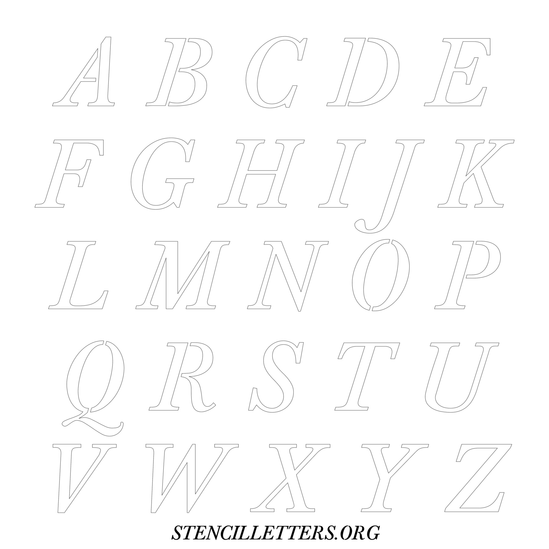 Printable Uppercase Alphabet Stencils - Design 32 Italic