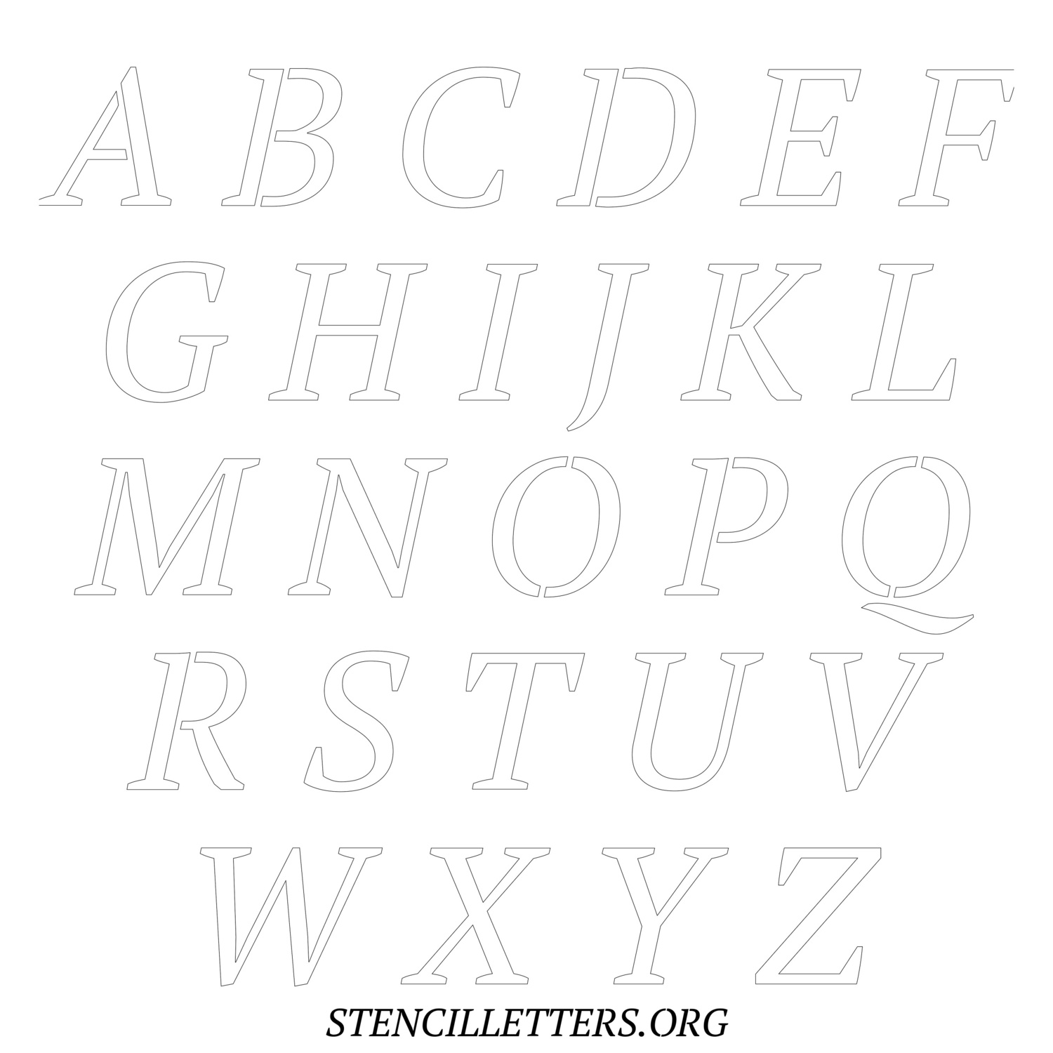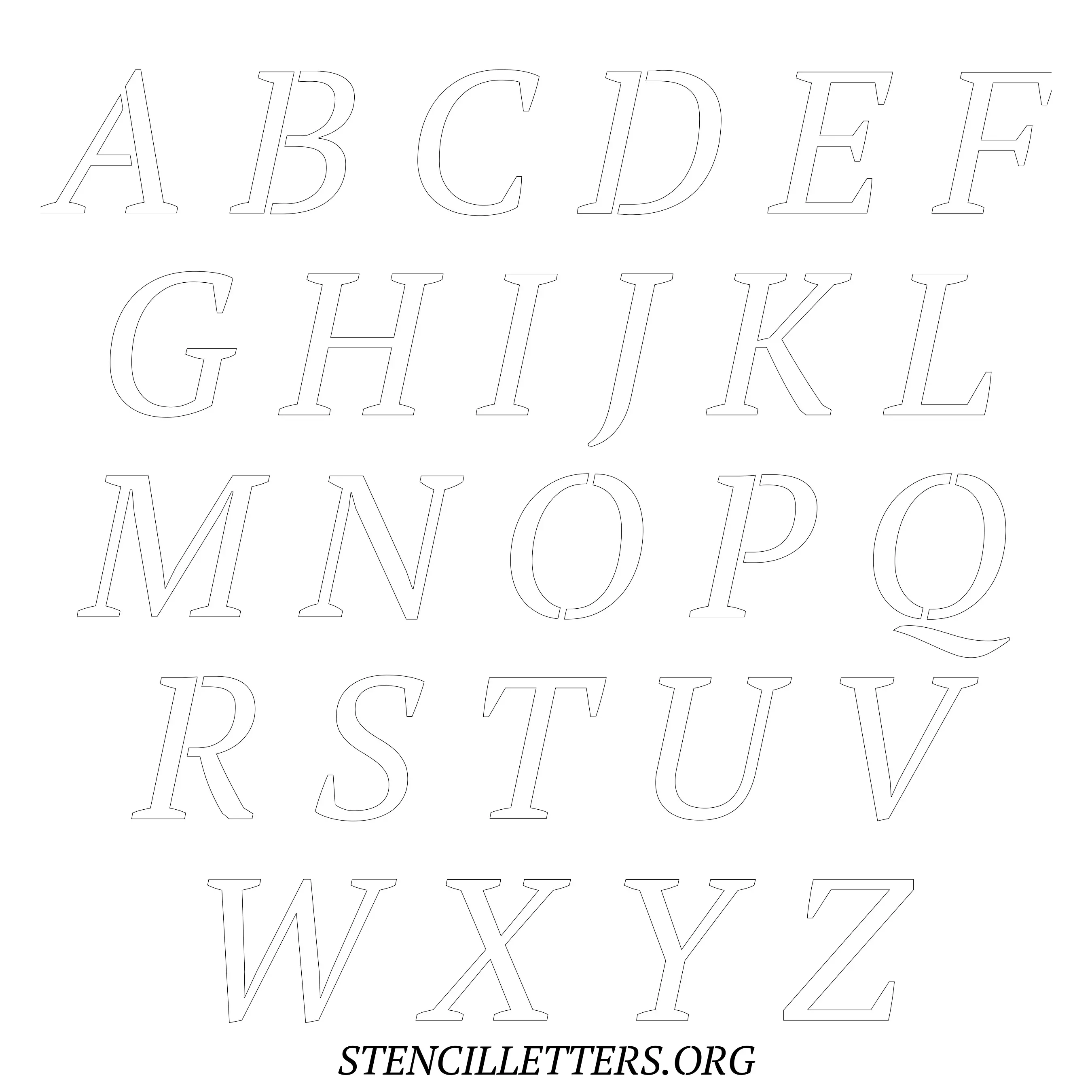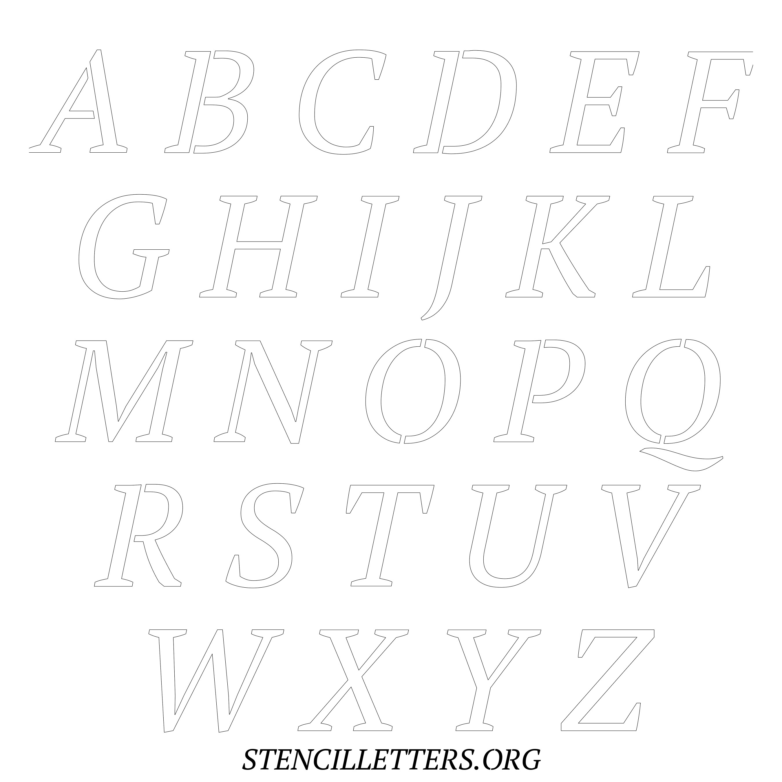 Printable Uppercase Alphabet Stencils - Design 50 Italic