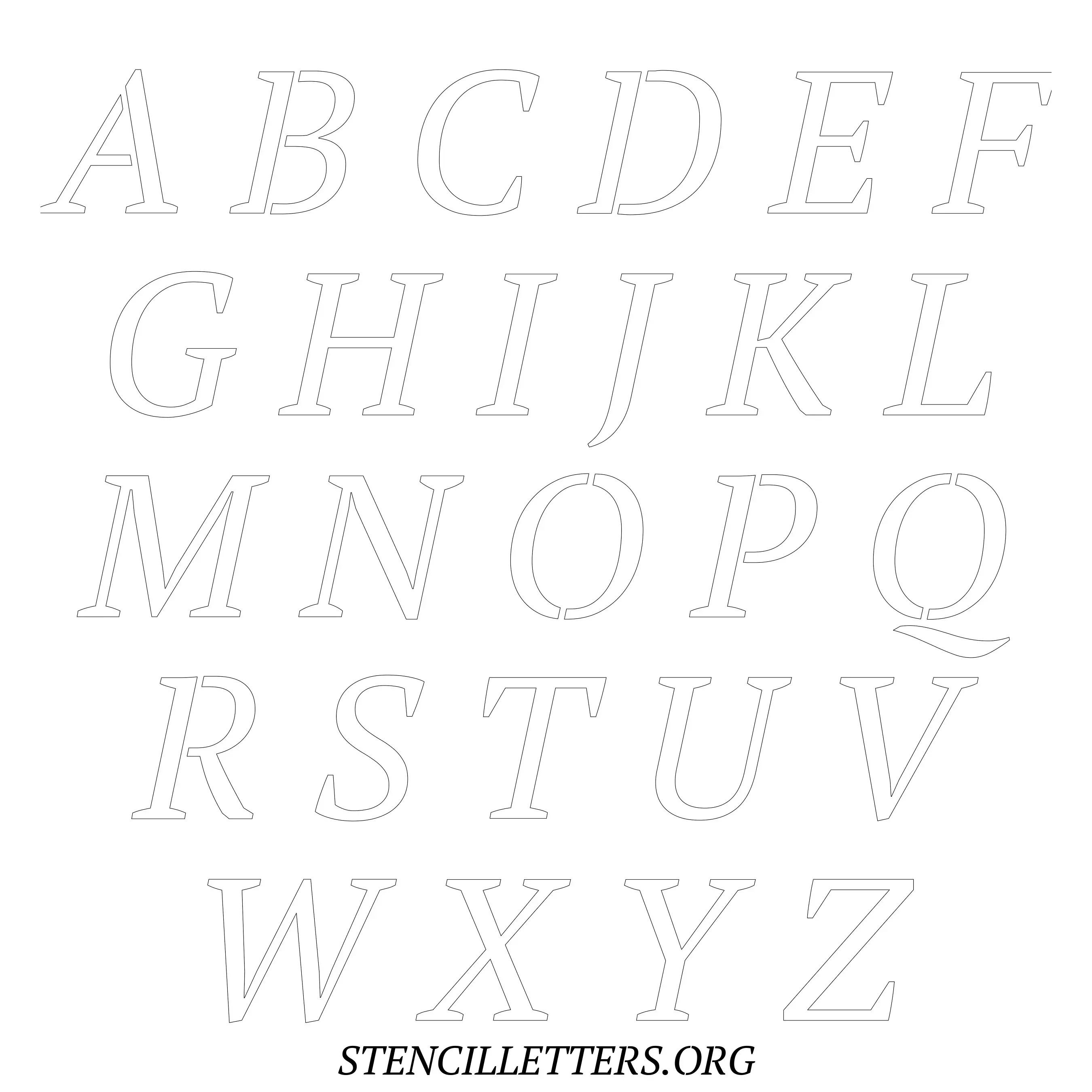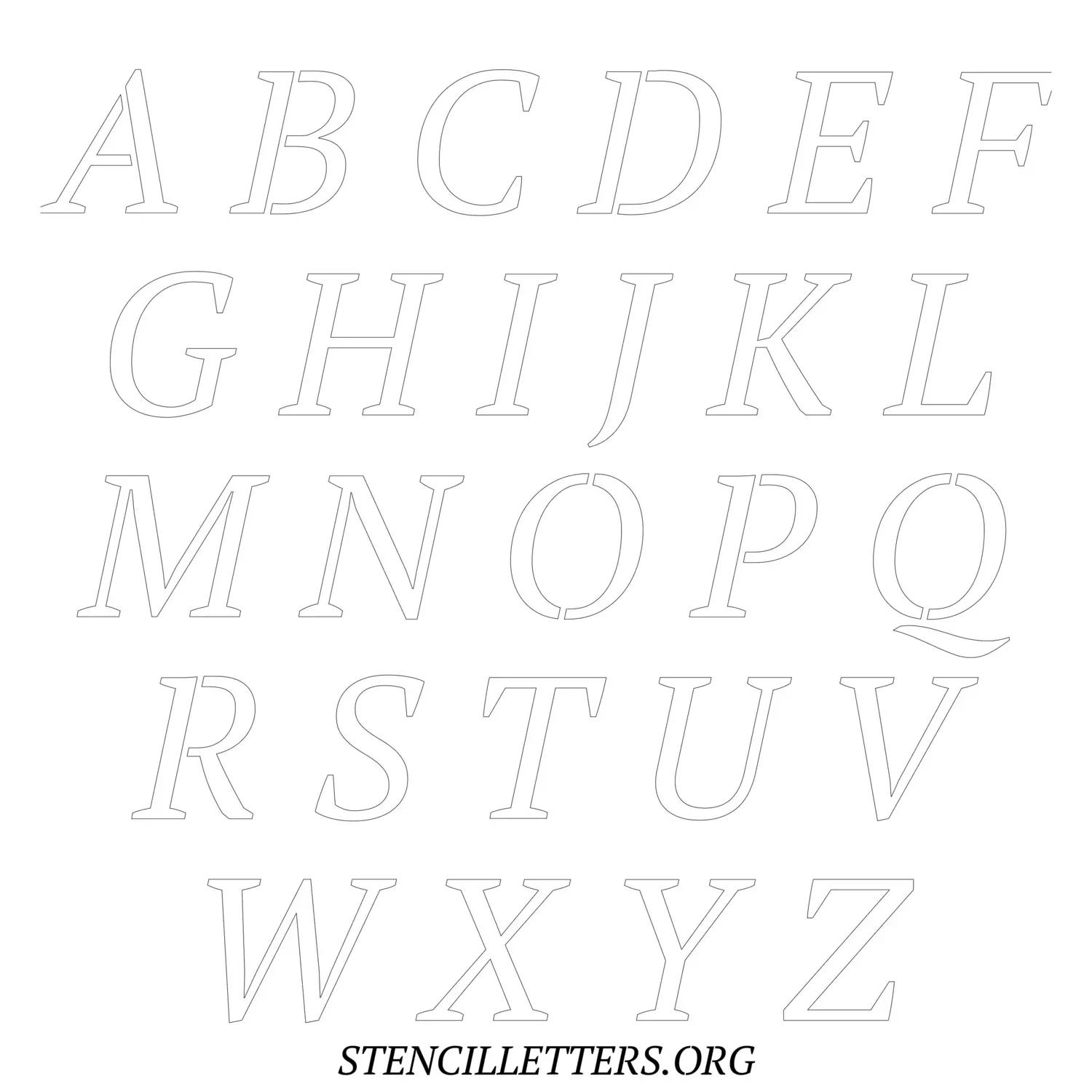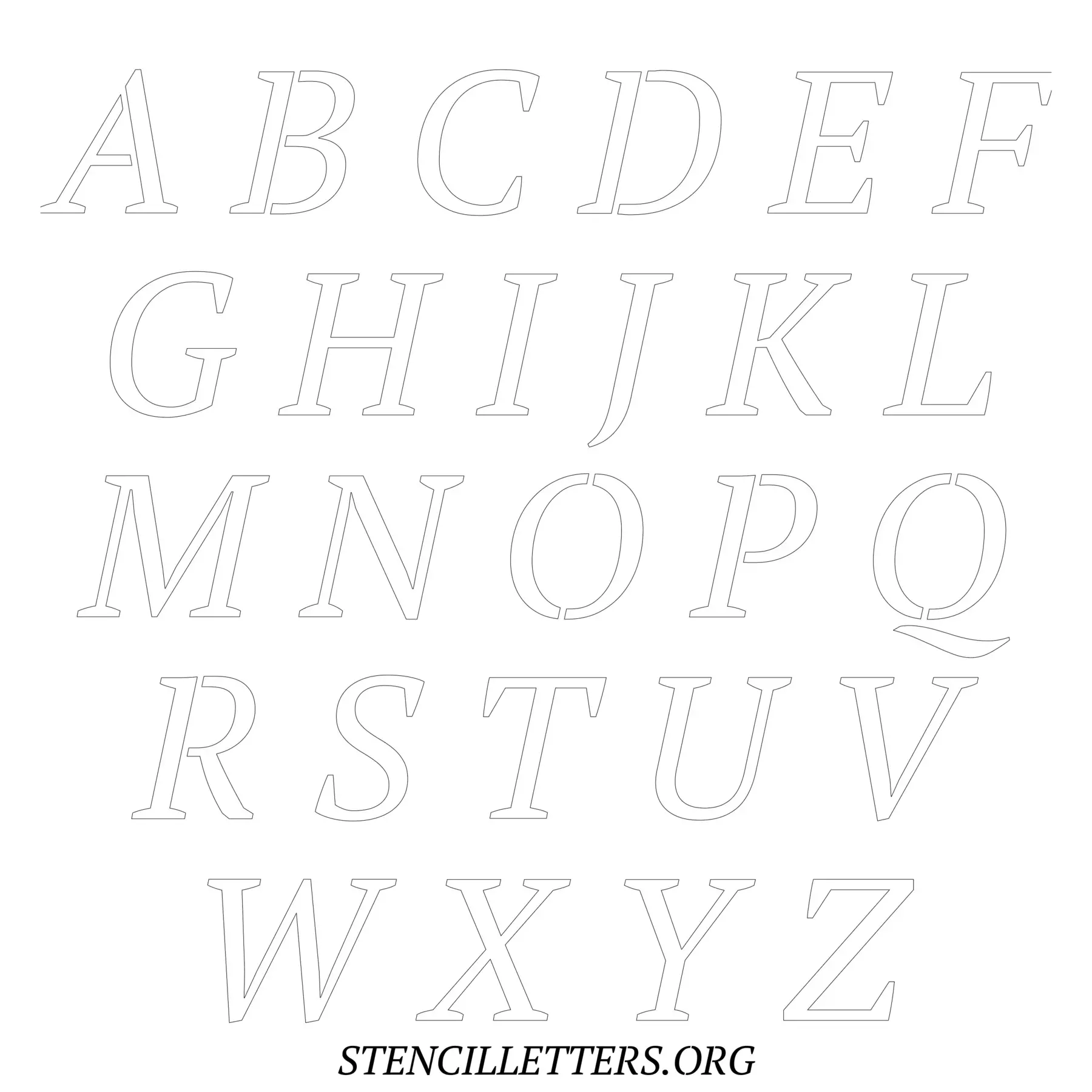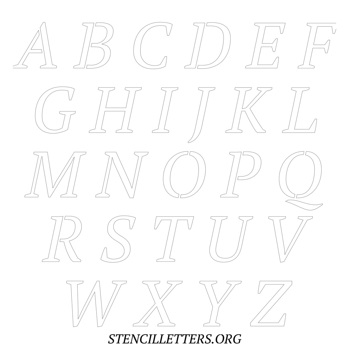 Printable Uppercase Alphabet Stencils - Design 50 Italic