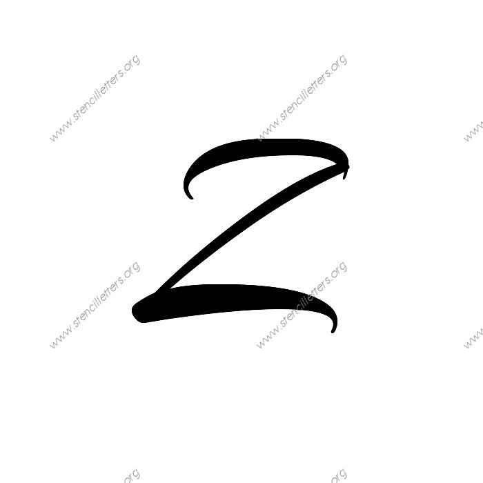 Brushed Cursive A to Z uppercase and lowercase letter stencils available in sizes from 1 inch up to 36 inches. This Brushed Cursive design is listed in the {Cursive stencils} selection.