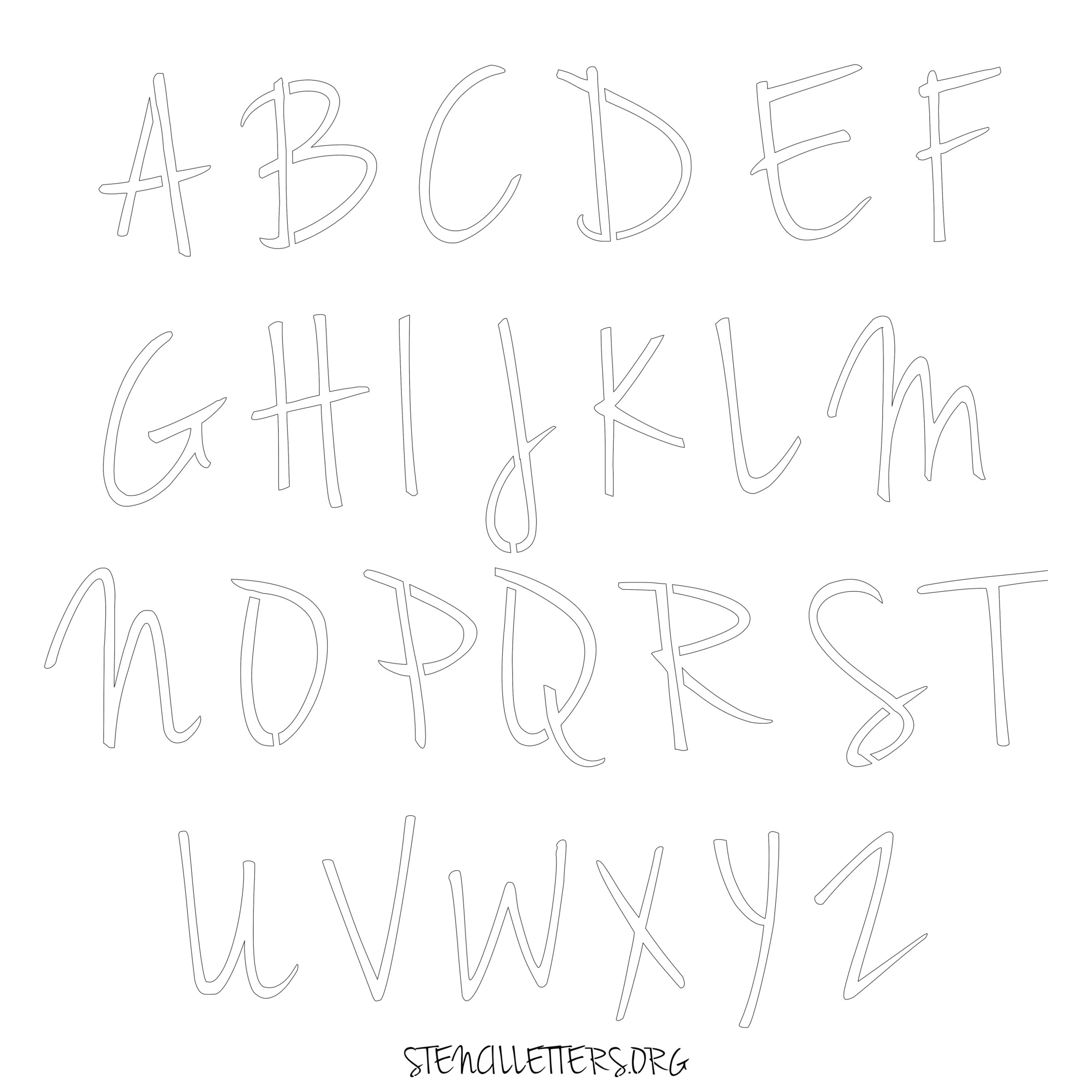 Stencil Design 134 Cursive. Print these free uppercase letter stencils and make your own DIY templates for your stenciling projects. Available in high resolution printable sizes: 4 Inch, 5 Inch, 6 Inch, 7 Inch, 8 Inch, 9 Inch and 10 Inch.