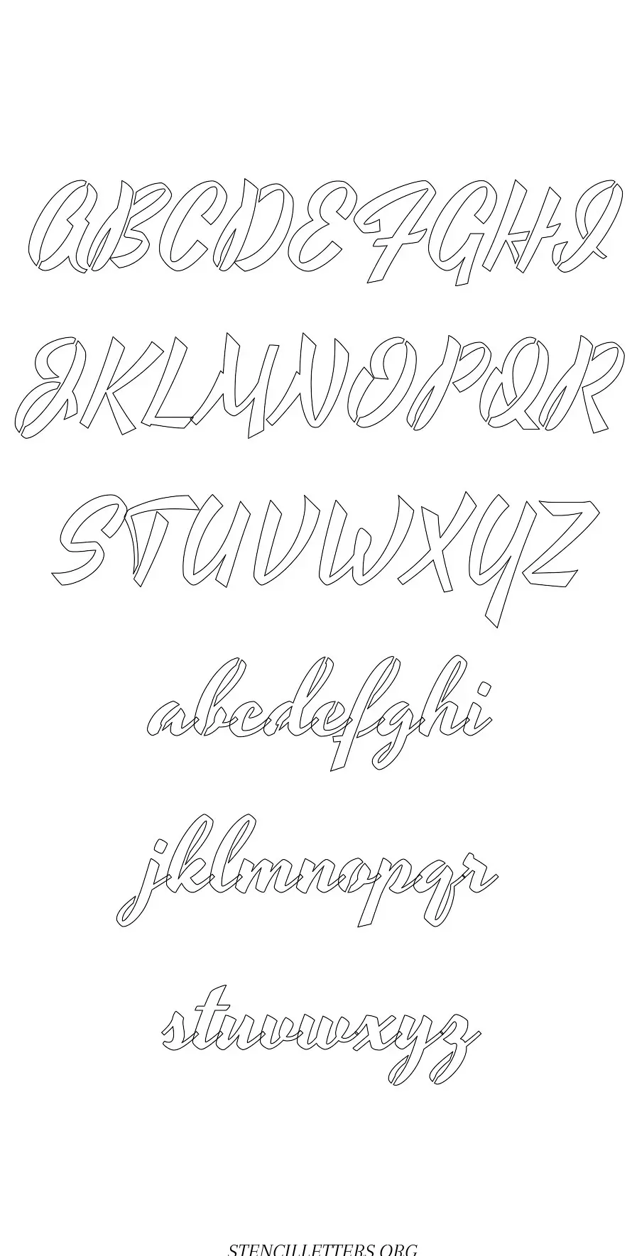Free printable 1940's Brushed Cursive standard and outline version letter stencils are available in jpg format below.