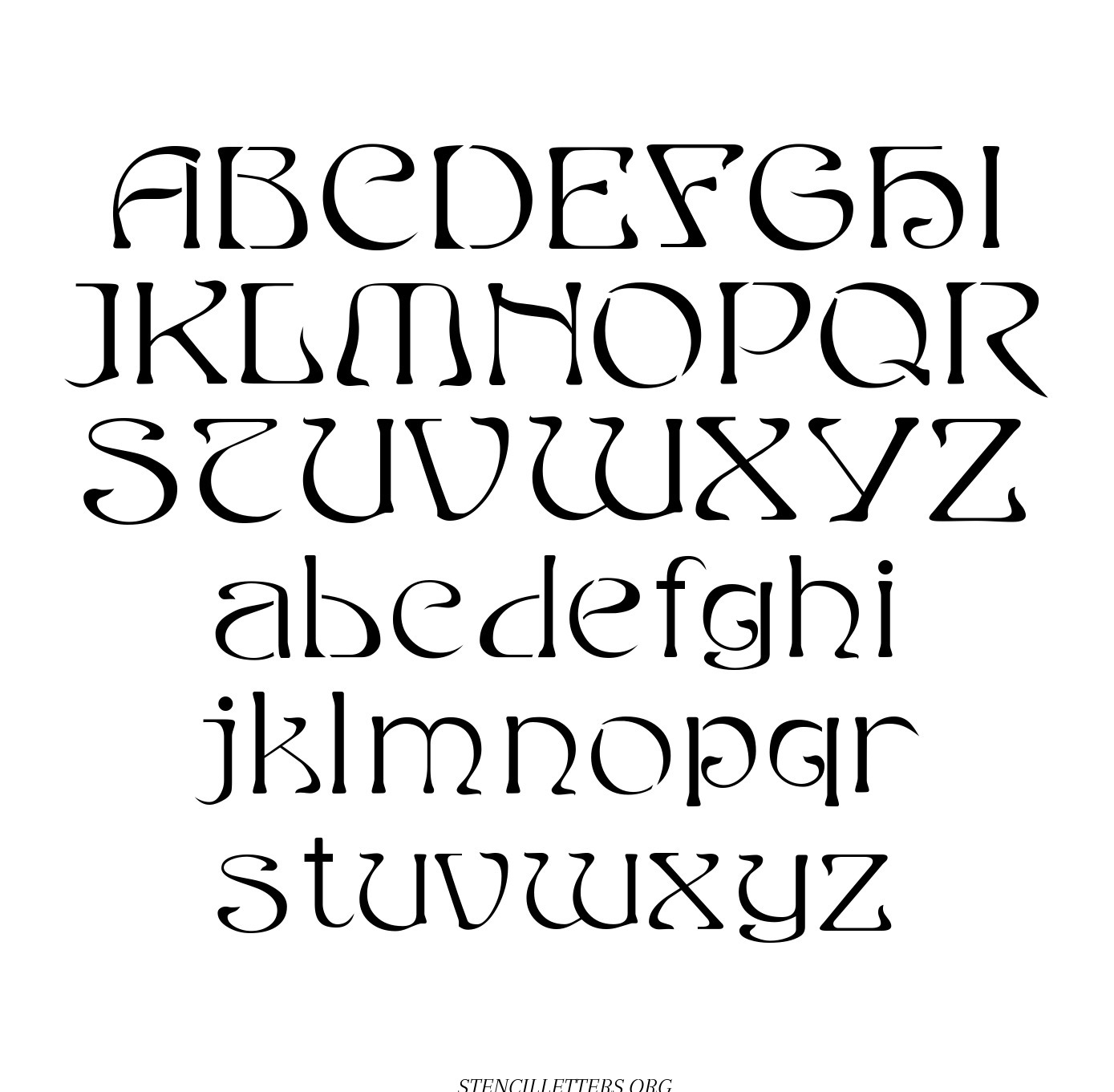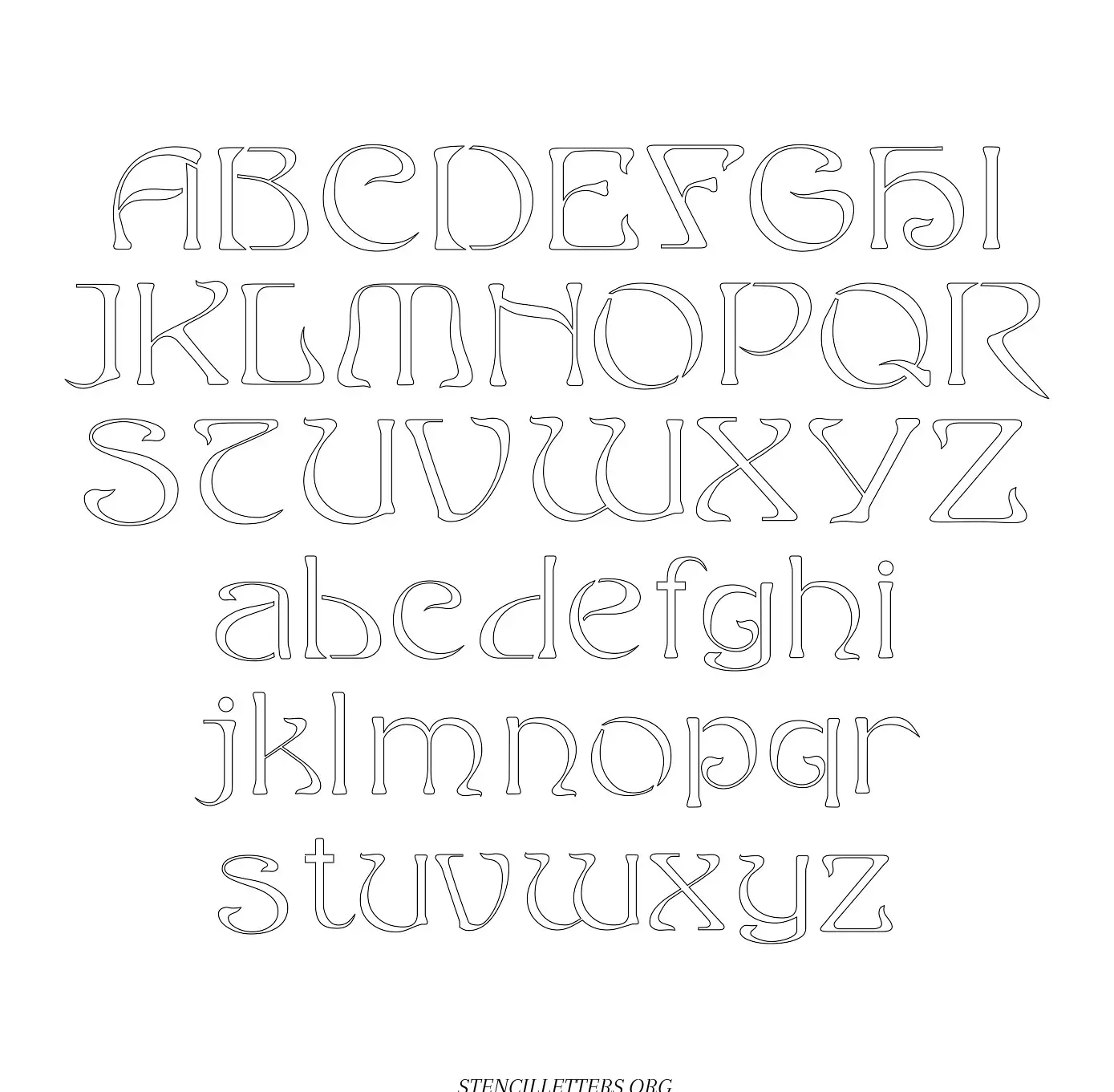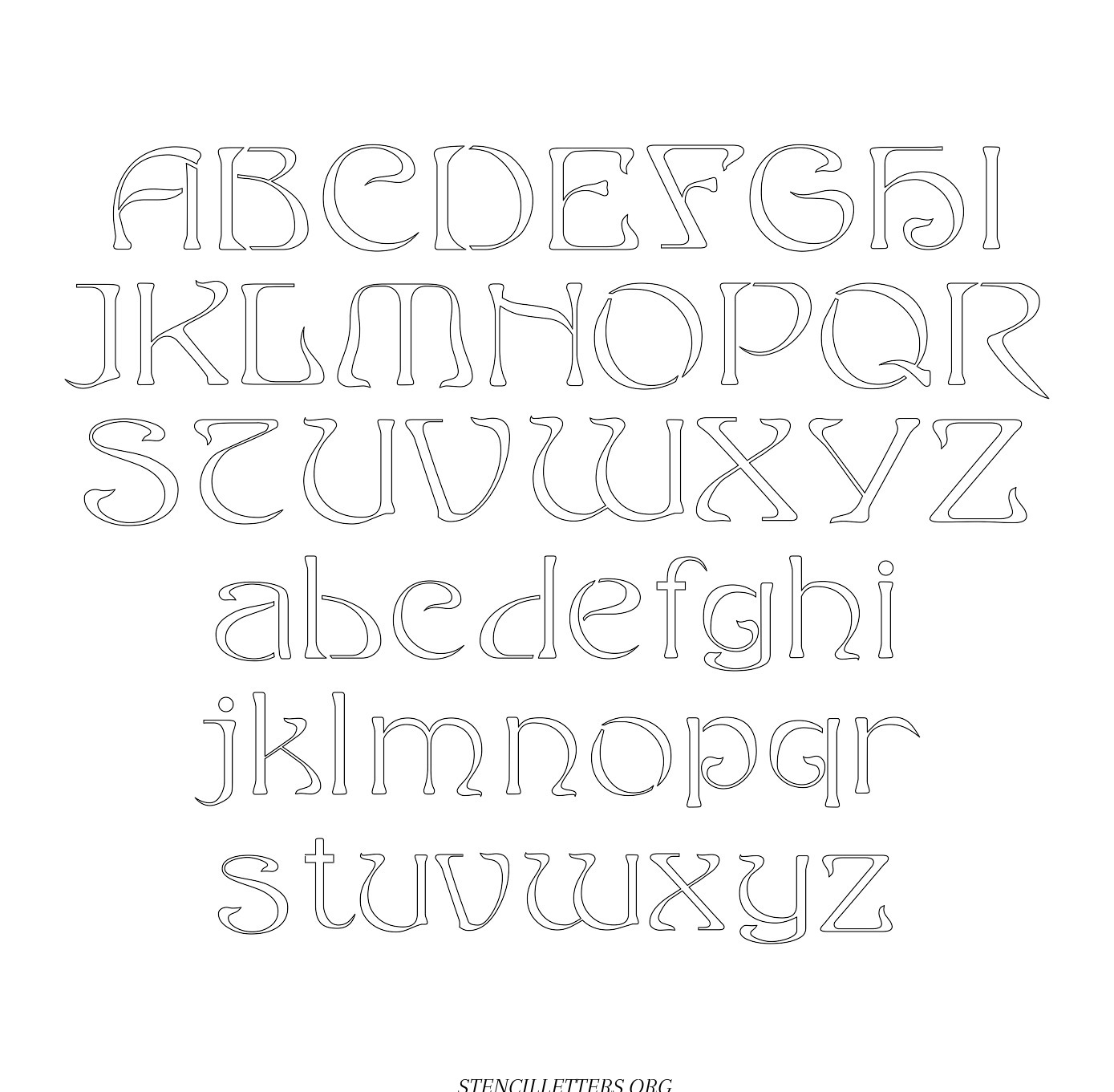 French Baroque Art Nouveau free printable letter stencilsFrench Baroque Art Nouveau free printable letter stencils in uppercase and lowercase with outline cutout alphabet letters.