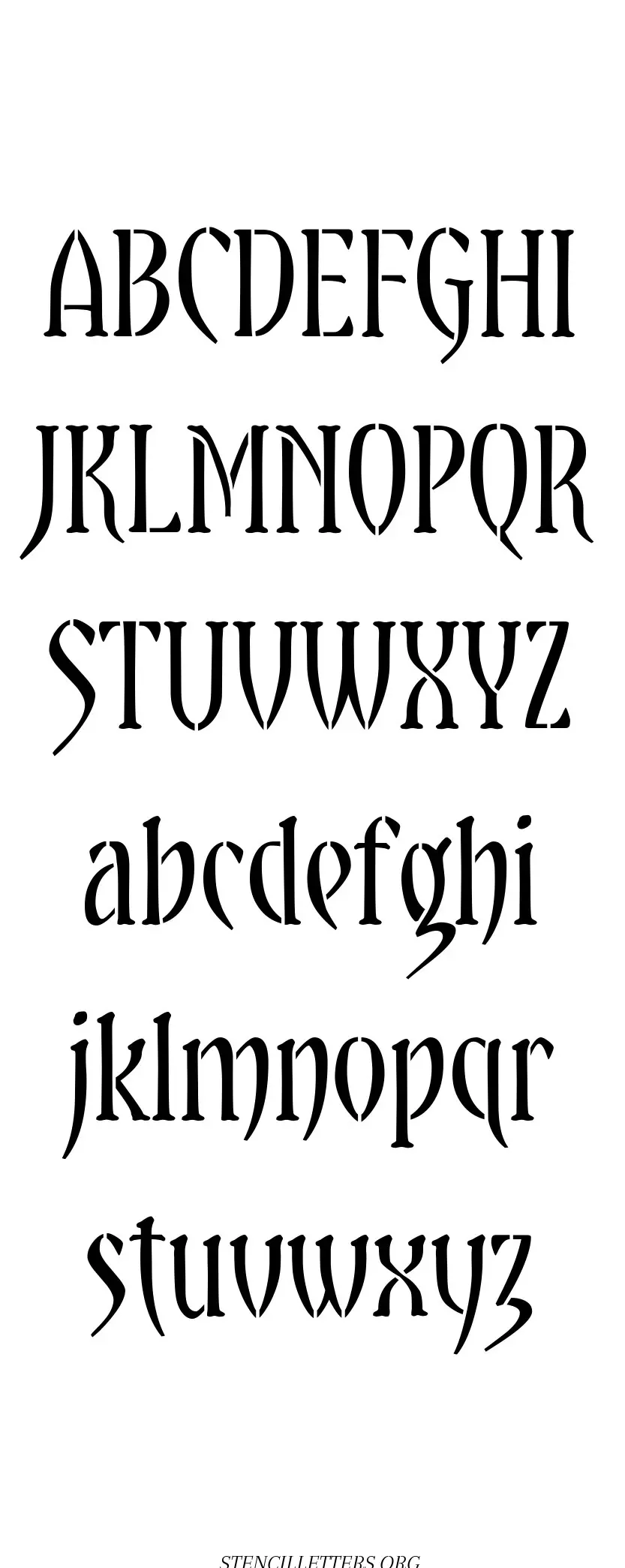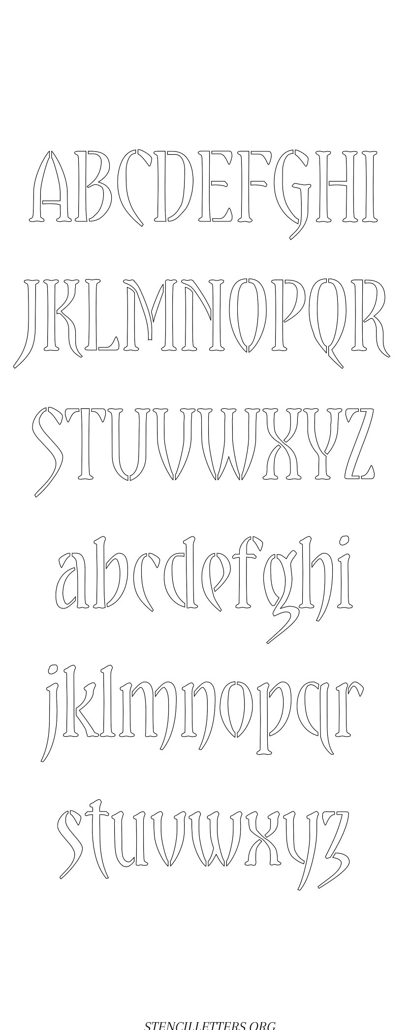 Gothic Lettering free printable letter stencilsGothic Lettering free printable letter stencils in uppercase and lowercase with outline cutout alphabet letters.