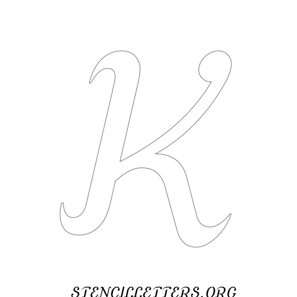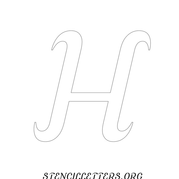 Free printable Grand Ornamental Cursive standard and outline version letter stencils are available in jpg format below.